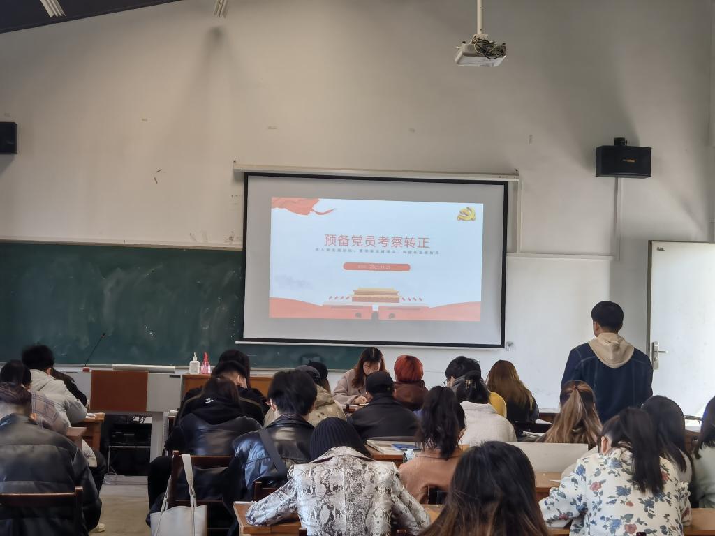 会议第一个议程为讨论预备党员按期转正议题,经过党支部一年的考察和培养,付雨婷、魏思琪、程海龙、陈德娴、郑薇薇、铁静缘、刘俊杰、彭浚捷、张俊哲、马智钧、黄雨涵、陈梓依、刘靖怡、陈李想共14名同志预备期满,提交党员大会进行讨论。首先申请转正的预备党员依次上台就自己一年来的表现与不足做思想汇报,各自发言完毕后,由入党介绍人介绍预备党员有关情况,表明意见,支部委员会报告审查情况,与会党员充分讨论后,经无记名投票表决,最终同意以上14名同志按期转为中共正式党员。