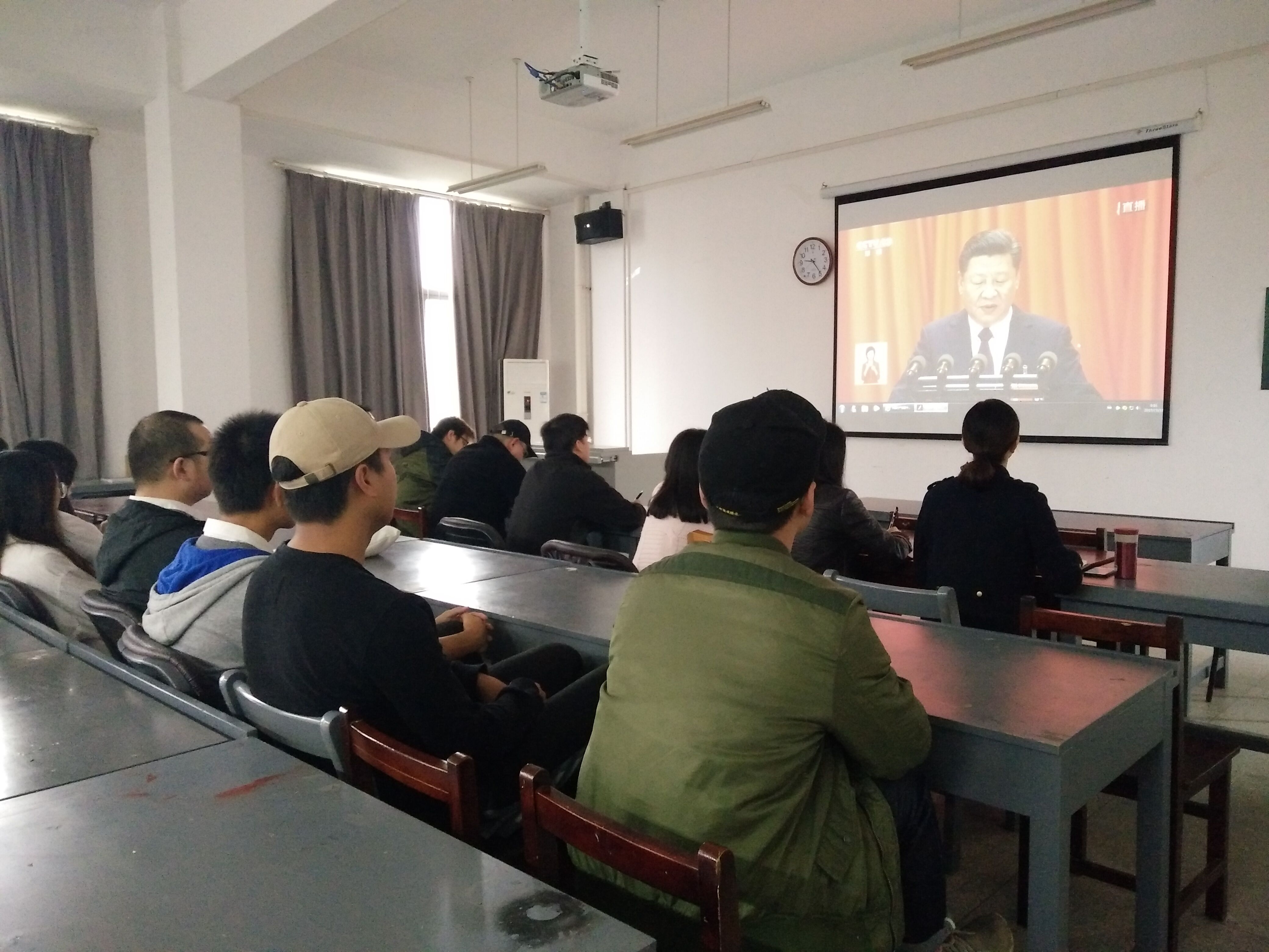 10月18日上午九时,湖北美术学院工业设计系在本系212教室组织党员观看“中国共产党第十九次全国代表大会开幕”仪式直播。首先习近平总书记代表十八届中央委员会向大会作报告,认真总结过去五年工作,回顾总结党的十八大以来以习近平同志为核心的党中央团结带领全党全国各族人民坚持和发展中国特色社会主义的历史进程和宝贵经验,深入分析当前国际国内形势,全面把握党和国家事业发展新要求和人民群众新期待,制定适应时代要求的行动纲领和大政方针,从战略全局上对党和国家事业作出规划和部署。