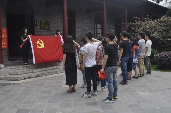 参观伊始,党员们井然有序的进入会址,分别参观了“会址历史陈列馆”、“毛泽东故居”、“毛泽东在武汉陈列展厅”、“农民运动讲习所旧址”等几个部分。看到在馆内陈列的军衣、草鞋、水壶以及手枪等物品后,同学们深刻体会到了革命志士为共产主义事业奋斗的艰辛,内心充满了对他们的敬仰之情。驻足于历史图片面前,大家认真聆听革命事迹,低声交换着心得感想,感受着共产党人坚不可摧的革命精神。在农民运动讲习所旧址,全体预备党员面向党旗,郑重宣誓,志愿加入中国共产党,永不叛党。