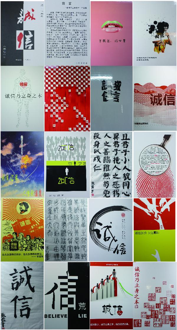 系党总支按照学院《2014年纪检监察审计工作要点》的要求,认真组织部署,此次活动于5月份展开,得到广大学生的积极响应,共收到作品70余件,经过系部专业老师遴选,最终选出30余件优秀作品进行展览,以此营造了良好的诚信之风,强化了学生的诚信意识,培养了学生的诚信品质。
