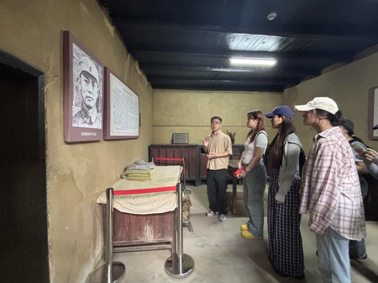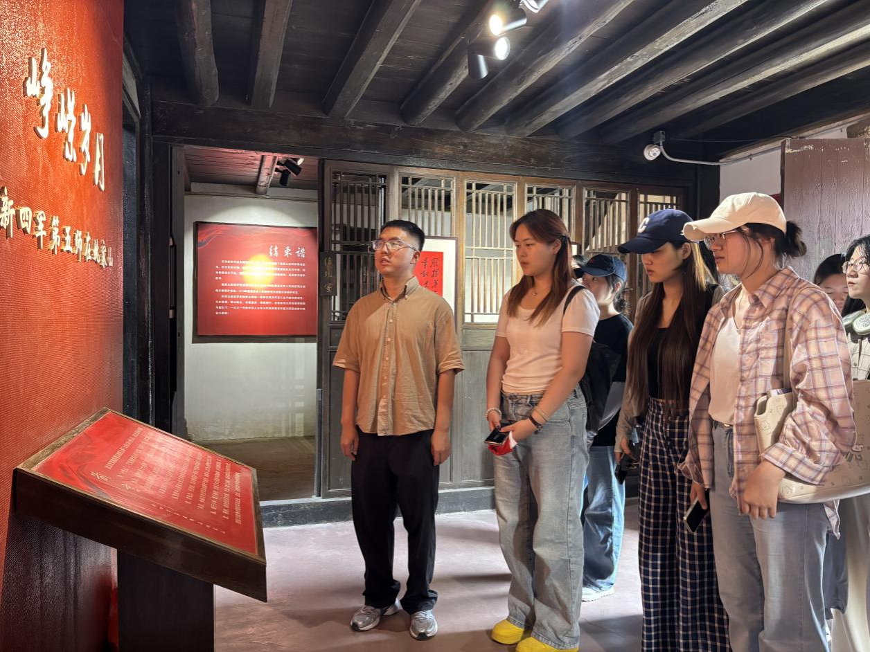 调研实践团队的师生们在新四军第五师历史陈列馆内,驻足历史文物、仿真场景及群英浮雕,通过“木兰烽火”“怒潮喷涌”“挺进鄂豫”“中原抗战”“战略包围”“辉煌胜利”等专题展设,重温新四军第五师独立支撑武汉外围敌后抗战的壮烈历程。在李先念、陈少敏旧居,师生深切缅怀老一辈革命先烈为国家富强、民族解放、人民幸福所作出的辉煌成就,厚植爱国主义情怀,明确时代使命担当。随后参观现存新四军第五师司政大礼堂、枪械所、印刷厂等革命遗址,重温烽火岁月,感受昔日革命干部与人民群众的鱼水情谊。
