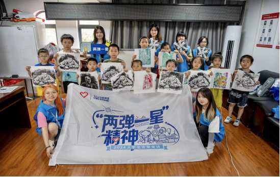 宣讲过后,团队成员带领现场儿童开展了邓稼先、钱学森、于敏三位“两弹一星”元勋的肖像版画拓印体验,在宣讲团成员马宇轩的介绍下,小朋友们对版画拓印的历史渊源和制作工艺有了更多了解,也在潜移默化中学习了三位“两弹”元勋“做隐姓埋名人,干惊天动地事”的感人事迹。