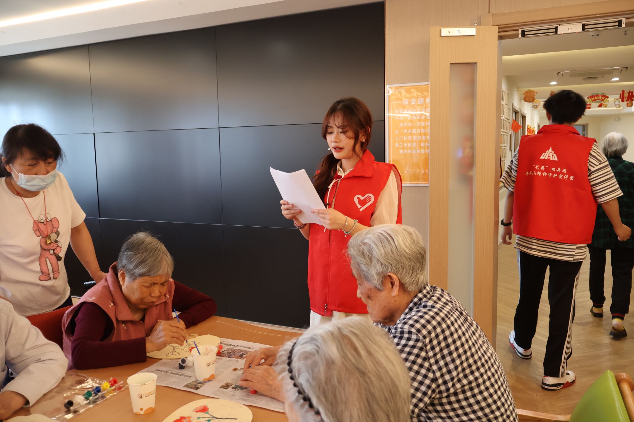 宣讲过后,宣讲团成员带领现场老人开展了“井冈山杜鹃花”创意团扇创作,丰富了老年人精神生活。佛祖岭街道佰穗养老中心朱经理表示,本次活动让现场几代人对井冈山精神有了更深刻的领悟,也给予了老人们一段艺术创作的美好时光,意义非凡。