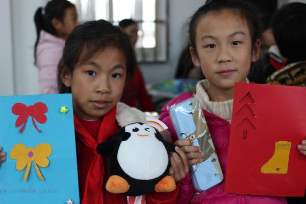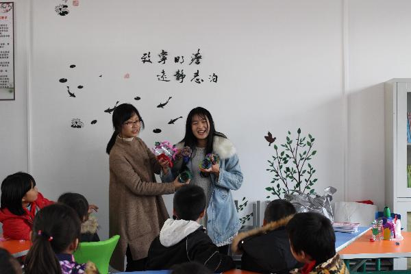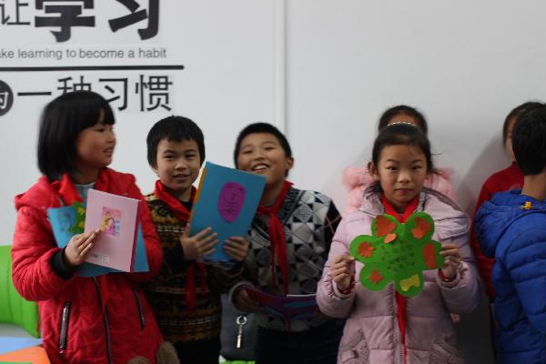 经过半个小时车程,志愿者来到活动现场,做好充分的前期准备以及简单的分工。本次支教活动以“感恩老师,感恩父母”为主题开展,在与学校方面的管理人员接洽好工作之后,下午15时整活动正式开始。活动初始,主持人和同学们展开交流,同学们积极的向志愿者们介绍自己,气氛十分融洽。紧接着开始问答环节,为了调动孩子的积极性,志愿者们还精心准备了各种文具礼品,同学们热情高涨踊跃回答。问答环节结束以后就是支教的重点手工制作环节,在制作过程中,将同学们分为五个小组分别由两个志愿者负责,志愿者们向同学们发放色卡纸、铅笔、胶布等制作材料。在志愿者的指导之下,同学们自己构思并利用这些材料制作将要送给老师的贺卡,写上感恩老师的语言。一张张颜色鲜艳的贺卡,稚嫩的字迹都代表着孩子对老师最真挚的感谢。孩子们在制作过程中体会到手工制作和绘画的乐趣。