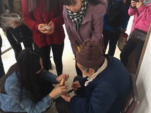 为充分发扬大学生志愿服务精神,践行社会主义核心价值观,工业设计系分团委学生会于11月23日上午前往江夏区五里界敬老院展开看望老人活动,奉献爱心,这也是我系第四个年头前往敬老院开展的志愿服务活动。我系从2011年3月开始,坚持每年3月份和11月份开展前往五里界敬老院献爱心活动。