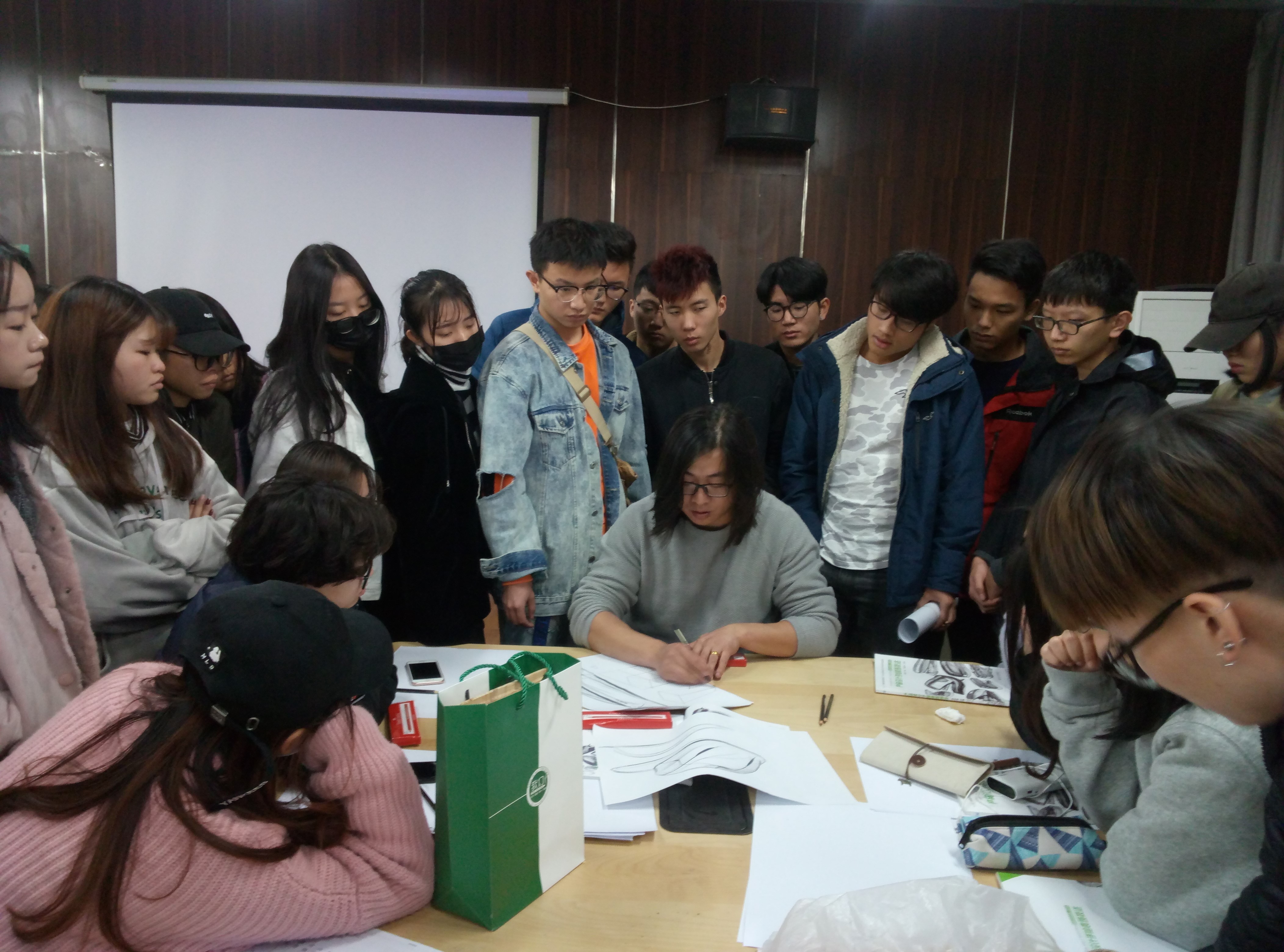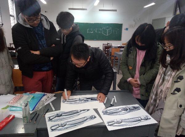 此次课程邀请了具有多年实践经验的汽车外观创意设计部门的设计师李文现场示范手绘。在手绘教学中李老师悉心解答手绘学习中的诸多问题,将自己多年实践及感悟传授给学生。设计师肖鸣认为手绘是提升设计的催化剂,可以弥补设计师设计能力较弱的缺点;优秀的设计师,如果拥有一手好的手绘,就能如虎添翼,也更能够得到客户的认可,好的手绘能力对一个设计师来说是极为重要的。设计师李文静以信息化社会背景下的手绘和计算机辅助设计之间的关系,结合丰富的汽车设计经验,论述了手绘的重要性,并现场手绘教学,过程中就如何画好手绘、马克笔表现技法等方面与同学们进行分享、交流。最后数模师何家圣讲述了汽车造型数据设计中A面处理技巧并且介绍了数模师的基本工作情况并分析了参数化设计在未来汽车设计中的广阔前景。