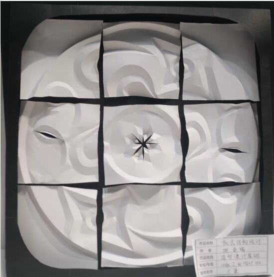 此类作品为学生优秀作品展示,作品在一定程度上传承了古代雕工技艺的外形,同时也融入各种时尚新颖的元素,既有传统的文化气息,也蕴涵时代发展的潮流。同时,作者从世界名画中吸取灵感,融合中西方元素,利用折纸的方式表现出来;并填入矢量曲线素材,表达特殊的意境,呈现出抽象形象。