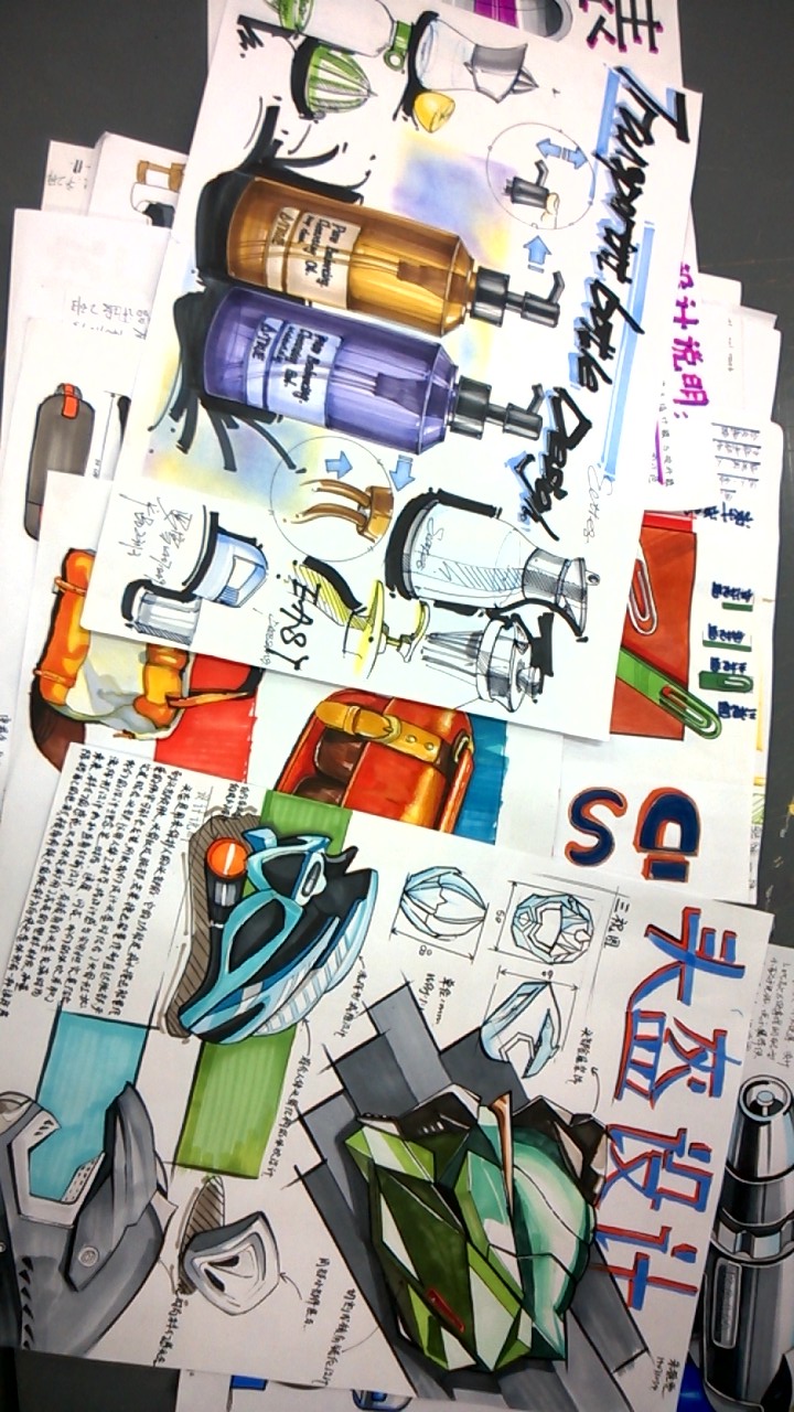 通过每天在课堂上实际操作训练与课堂辅导,每周五进行一次产品主题手绘考核,反映出的问题会在接下来的一周有针对的训练、拔高。三周的短期训练,基本掌握手绘表现的方法、技能。