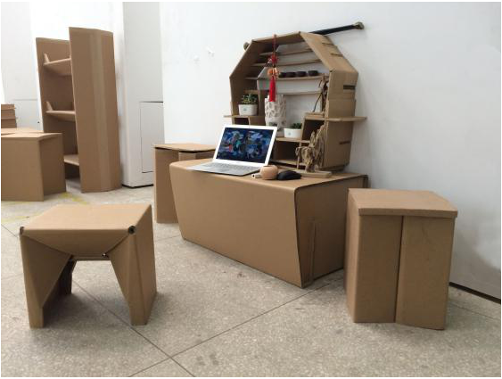 2015年12月11日,湖北美术学院工业设计系2013级产品设计专业《造型设计基础》课程作品展在A6教学楼2楼展厅展出。此次课程以由两个课题组成,为期三周,前两周以瓦楞纸板为材料设计制作能够承受人体重量的组合家具,第三周是以泡桐木线条为材料设计制作桥类承重结构练习。