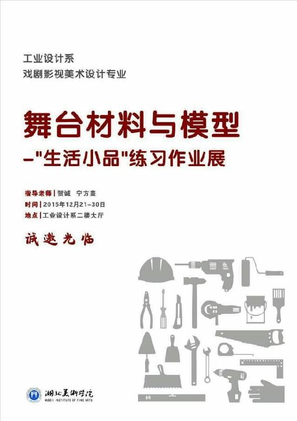 (通讯员 彭舒慧)2015年12月20日,在我校工业设计系二楼大厅,舞台材料与模型课程——“生活小品”练习作品展圆满开幕。国家一级舞台美术设计师、湖北舞台美术协会会长田少鹏先生、工业设计系教授刘向东、产品设计教研室主任王莉莉,指导老师宁方盖、雕塑系教师万莉、武汉传媒学院舞美设计教师王乾榕以及工业设计系各位教师等诸位来宾、学生参加了此次活动,展示设计教研室主任贺诚主持了开幕仪式。