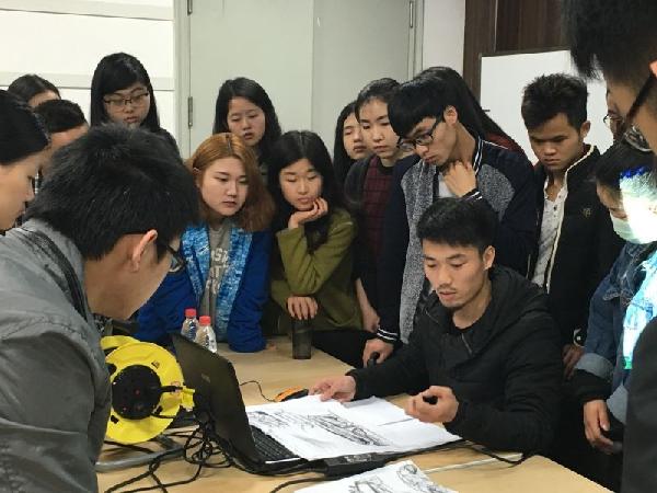 在4月6号下午,A6工业设计系210教室。李志昌,盖伟两位设计师在现场对同学们的手绘进行了指导,以自身的经历激励同学们练习好手绘功底,坚持自己心中的热枕。