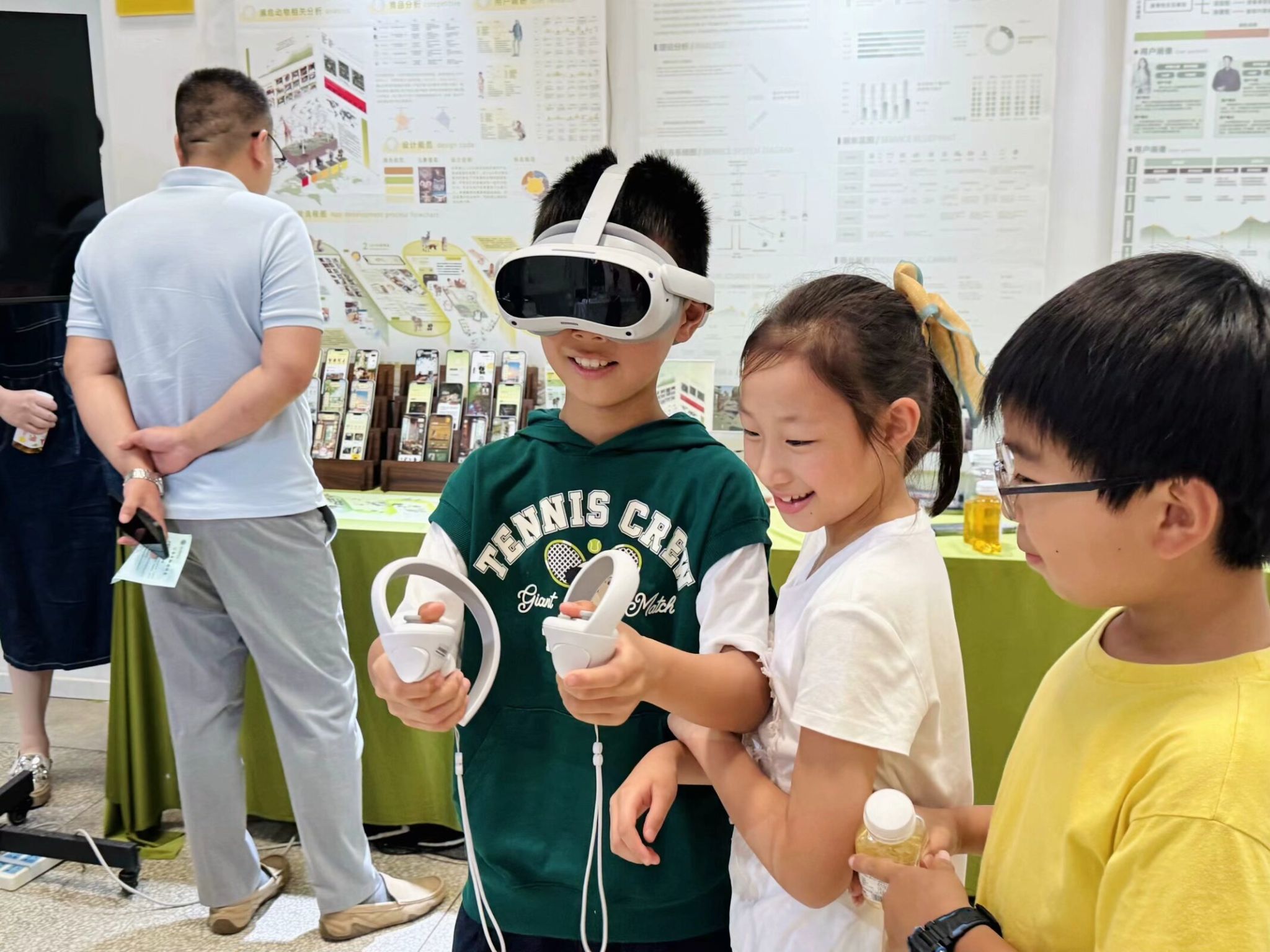 初夏的藏龙岛校区A6教学楼展厅内,孩子们的目光被一件件充满巧思的设计作品点亮。在智慧出行展区,极地多功能科考载具、火星科考种植智能载具以未来感的造型和智能化设计,引发孩子们对科技与生态的思考;智能交互展区则成为科技体验的“乐园”,孩子们通过VR设备操作,感受科技如何让生活更便捷,交互式投影装置以动态影像展现传统文化与现代技术的融合,引得孩子们连连惊叹;而在文化传承展区,非遗漆器工艺、西兰卡普皮具等作品前围满了好奇的小观众。