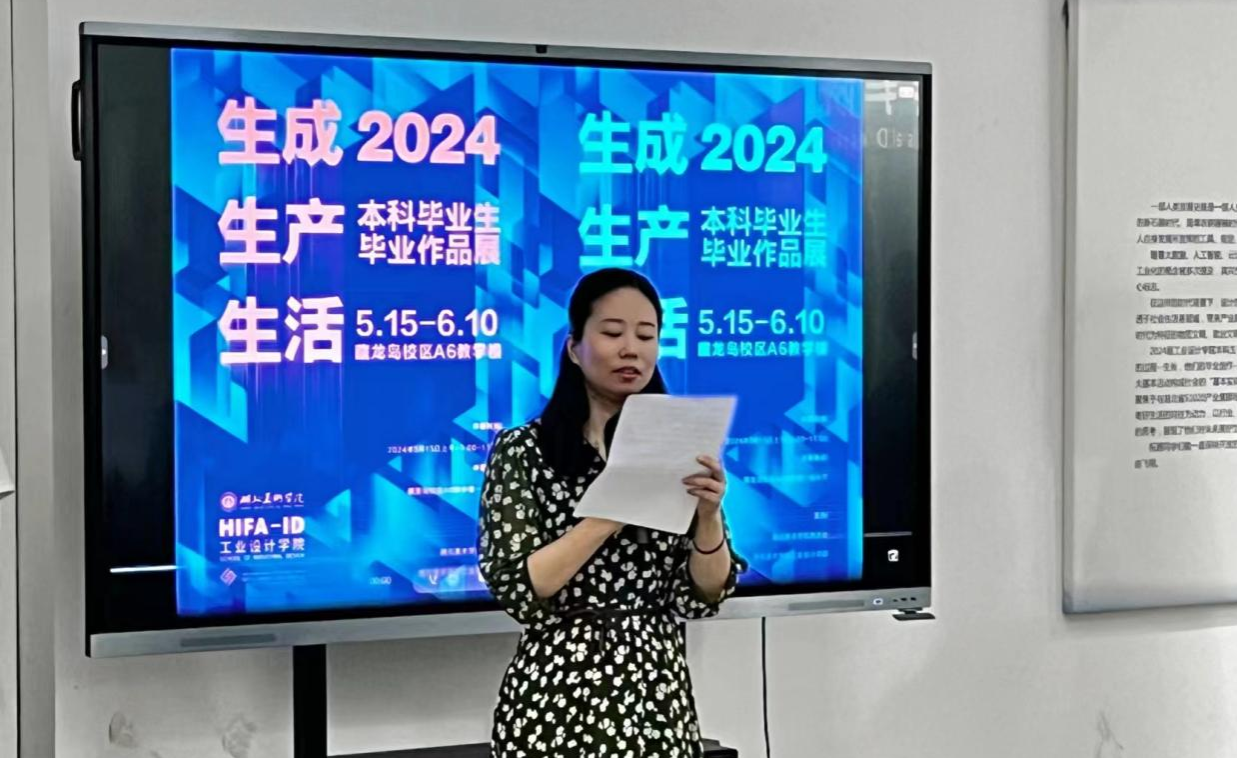 罗丽弦老师作为毕业设计指导教师团队代表发言。她对本届本科生毕业设计教学工作进行了总结,对本届本科生们在毕业设计创作期间的创新精神表示肯定。并祝福本届毕业生毕业后拥有自己的目标、奋勇向前,迎接更加绚丽多彩的生活。