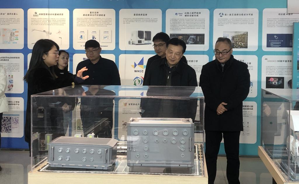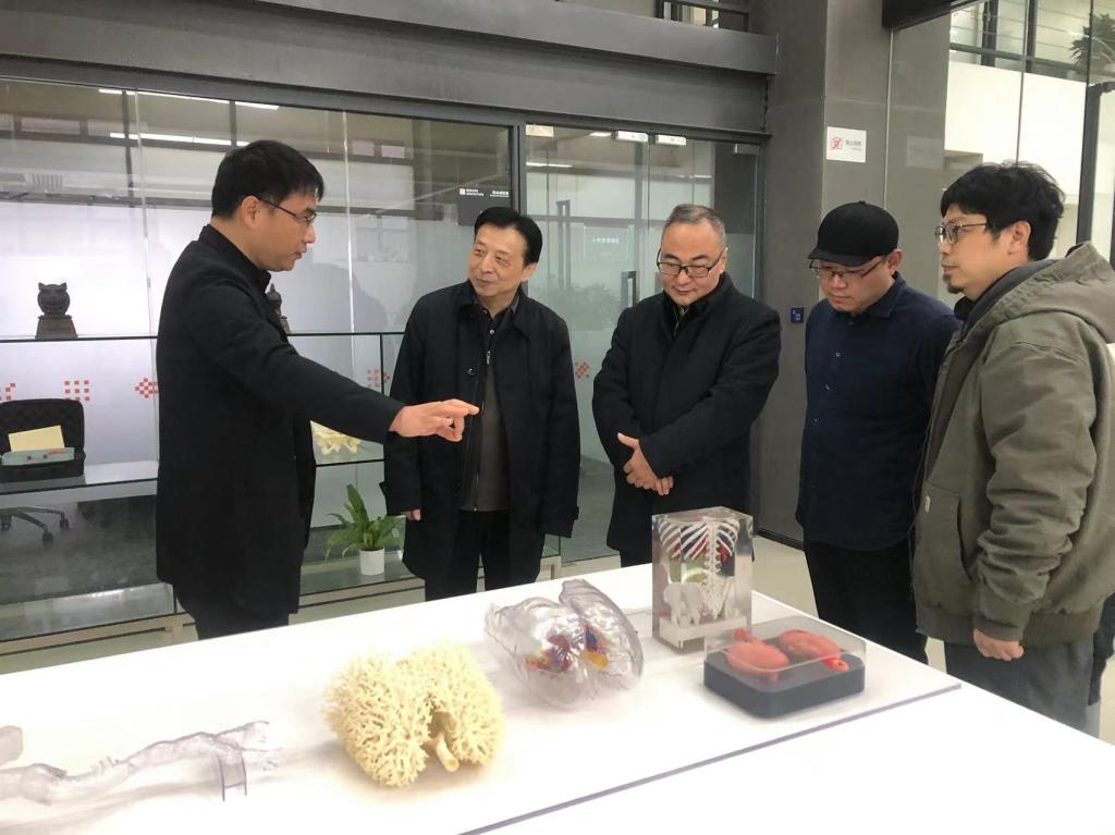D+M工业设计小镇由武汉市江楚开物科技有限公司(浪尖设计集团控股子公司)运营,“一小镇六组团”创新模式推进集群式发展,以设计创新为核心,整合产业链资源、研究应用开发、基础支持体系和创新孵化平台为一体,助力武汉发展工业设计、模具制造等工业服务业。张以林一行在武汉市江楚开物科技有限公司总经理李少康、副总经理汪琴的带领下,参观了D+M创新设计中心、CMFT创新研究中心、创新孵化平台等特色服务平台。参观结束后,双方进行了深入的交流座谈。