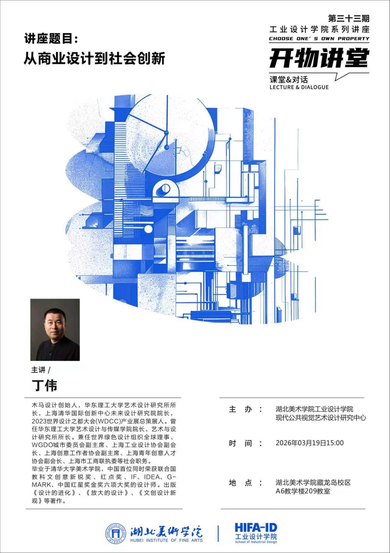 3月19日下午,在A6教学楼212会议室,工业设计学院邀请木马设计创始人、上海清华国际创新中心未来设计研究院院长丁伟教授为师生带来“开物讲堂”第三十三期《从商业设计到社会创新》专题讲座。学院研究生导师、青年教师及学生参加了本次学术活动。讲座由院长助理黄双君主持。