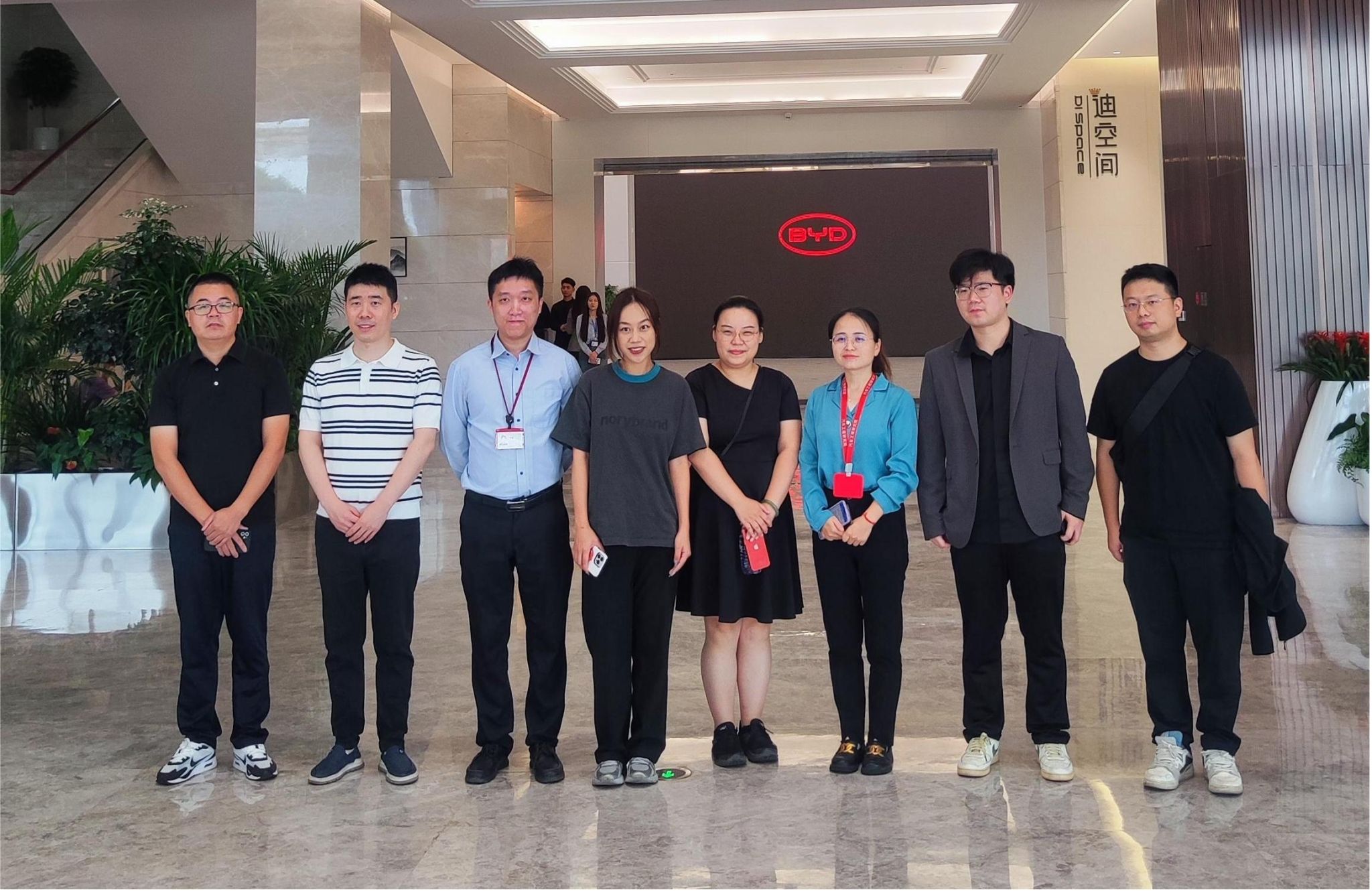 与在比亚迪工作的工业设计学院校友合影留念