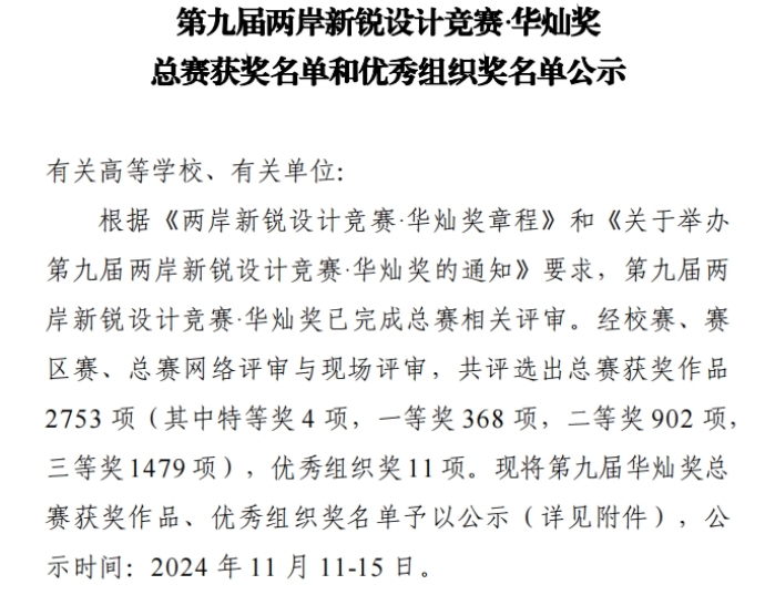 【一流本科建设点巡礼】工业设计学院在第九届两岸新锐设计竞赛·华灿奖大赛全国总赛中获佳绩